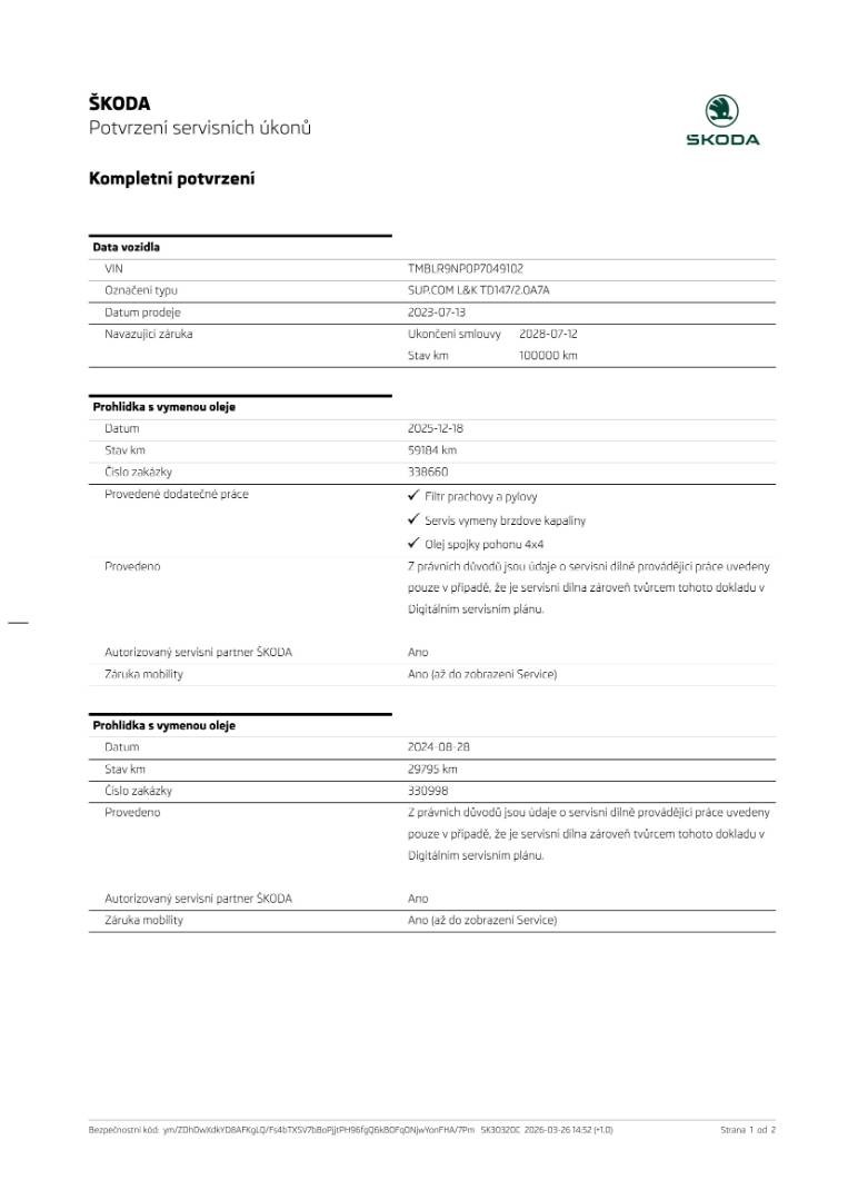 Úplná servisná história