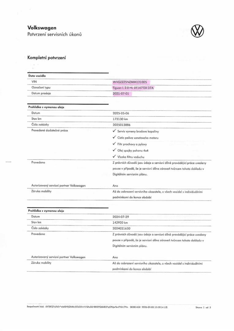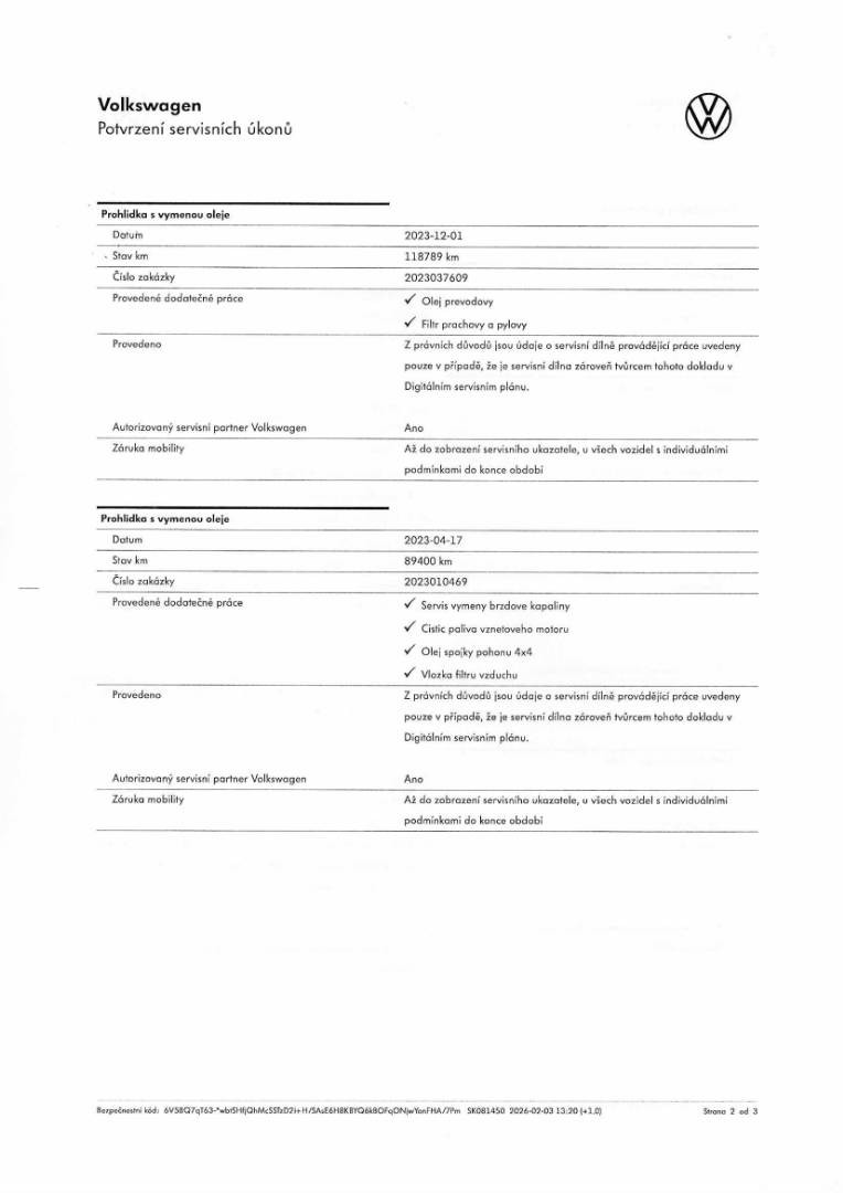 Úplná servisná história